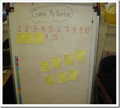 Every time I flip my chart over to Guess My Number…my students cheer with delight. This is such a simple and quick activity…but my students could play this for hours. They like the idea of guessing my number.